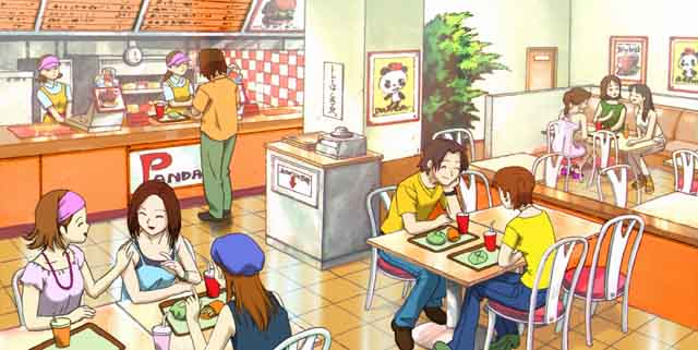 パンダバーガーでおしゃべりしてる女のコ達とか、